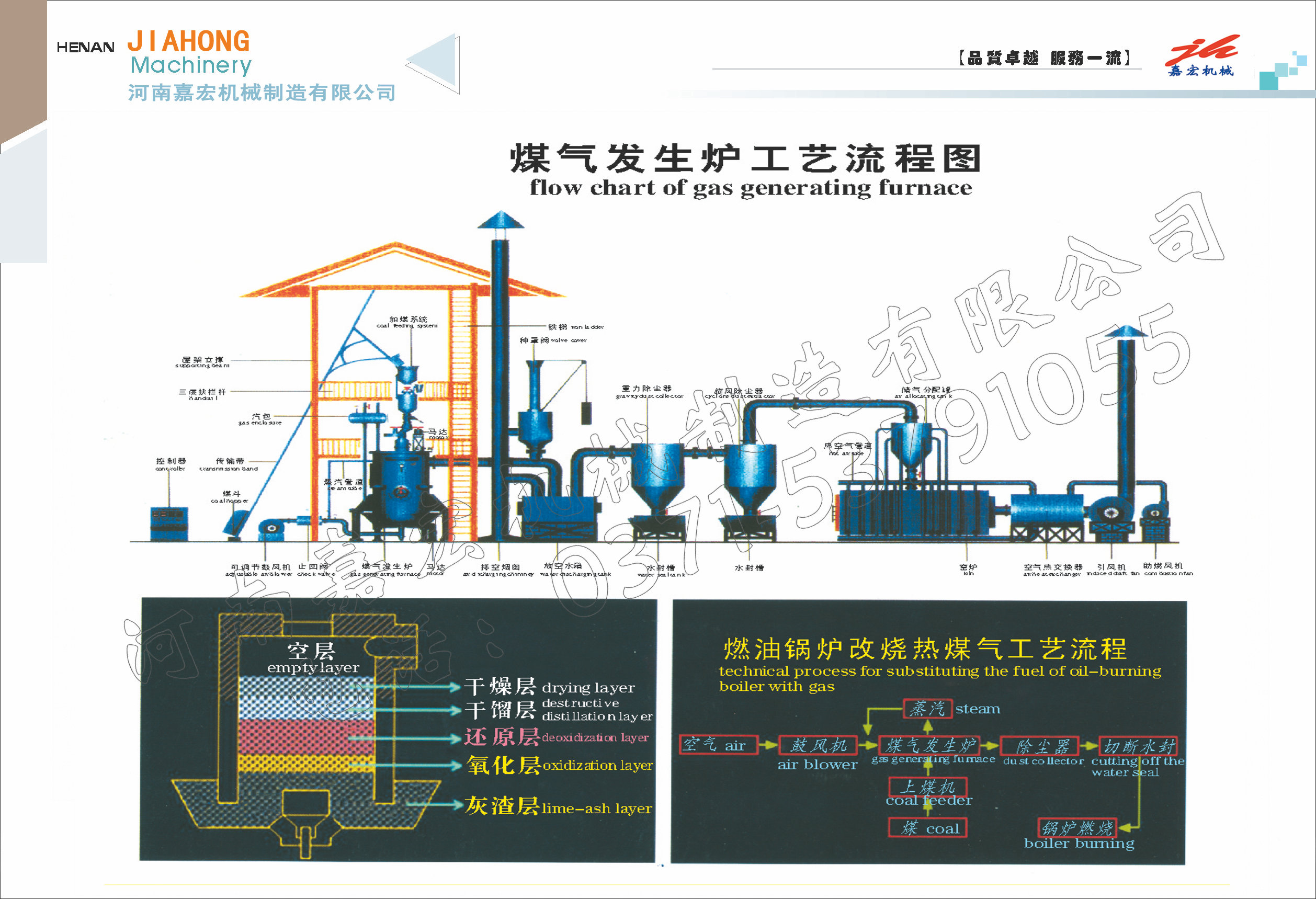 第三,煤氣發(fā)生爐符合工業(yè)爐煙氣排放標(biāo)準(zhǔn)GB9079.88,廢渣的排放采用濕式出渣,無污染,具有一定的社會(huì)效益。